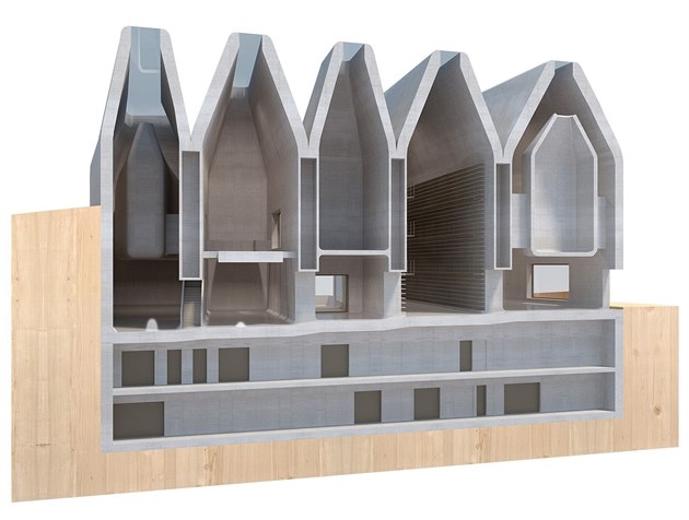 Řez podobou Středoevropského fóra jak ji pro olomoucké Muzeum umění navrhli architekti Jan Šépka a Václav Derner.