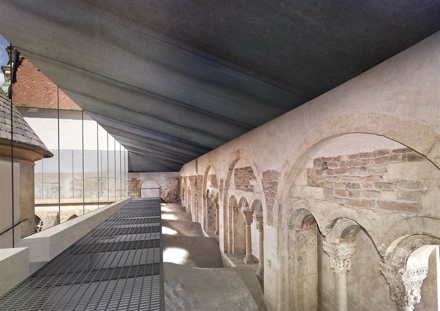 Vizualizace budoucí podoby expozice s pozůstatky Zdíkova paláce v Muzeu umění Olomouc po připravované rekonstrukci.