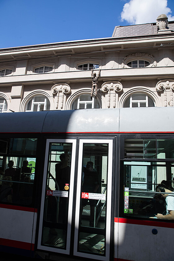 To je on. Platinový zloděj ručkuje po římse olomouckého muzea umění