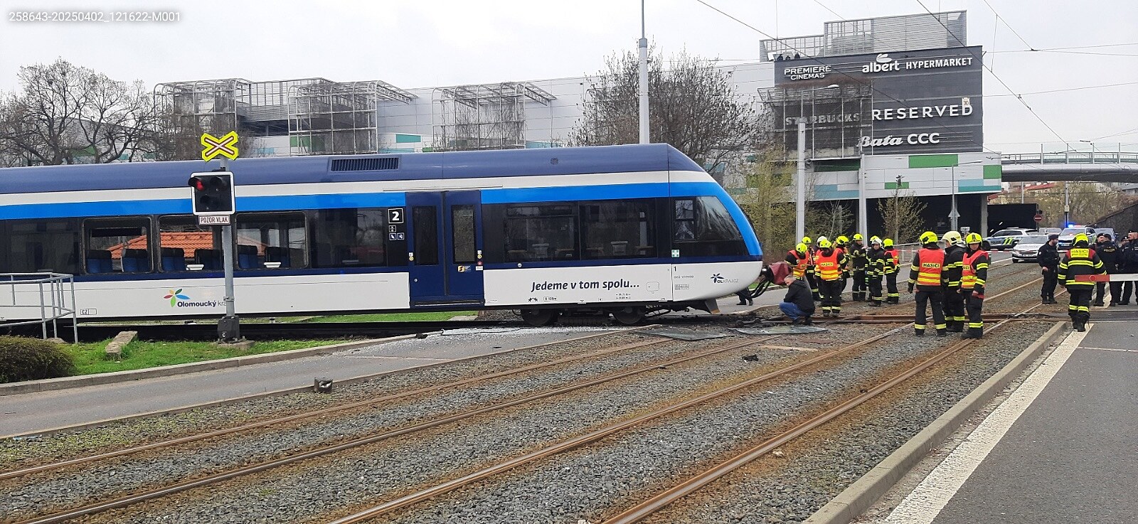 V Olomouci vykolejil na přejezdu vlak, zraněny byly dvě cestující. (2. dubna 2025)