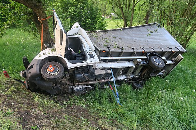 K nehodě dodávky došlo včera u Sobotína na Šumperku. Auto skončilo zcela zdemolované, řidič vyvázl bez zranění.