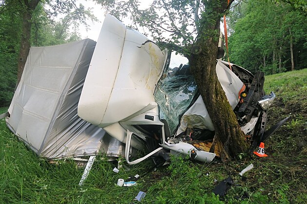 K nehodě dodávky došlo včera u Sobotína na Šumperku. Auto skončilo zcela zdemolované, řidič vyvázl bez zranění.