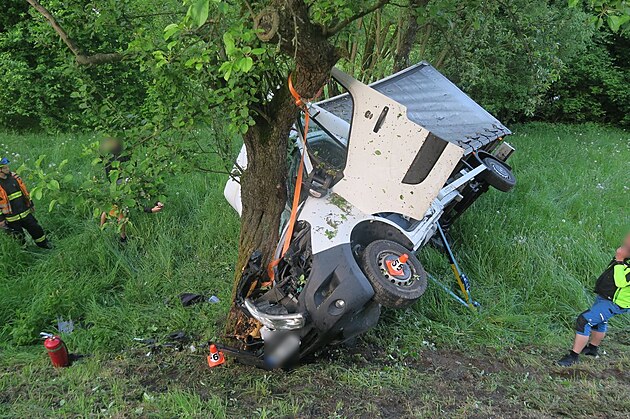 K nehodě dodávky došlo včera u Sobotína na Šumperku. Auto skončilo zcela zdemolované, řidič vyvázl bez zranění.