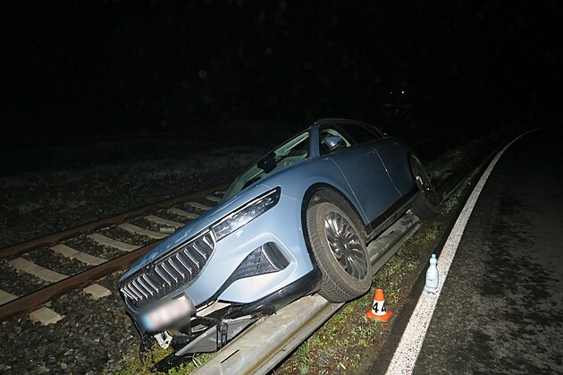 Řidič najel na svodidla a zůstal uvězněný v autě.