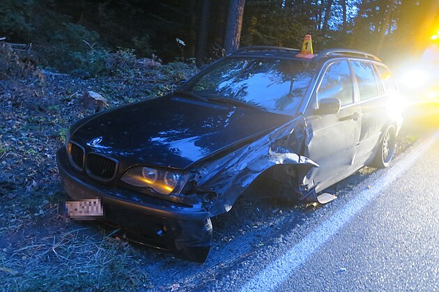 Následky dopravní nehody mezi obcemi Malé Hradisko a Stínava na Prostějovsku (28. srpna 2025)