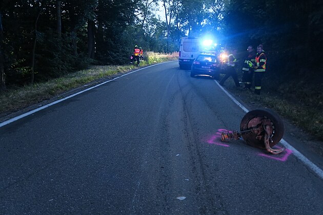 Následky dopravní nehody mezi obcemi Malé Hradisko a Stínava na Prostějovsku (28. srpna 2025)