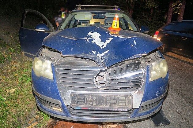 Následky dopravní nehody mezi obcemi Malé Hradisko a Stínava na Prostějovsku (28. srpna 2025)