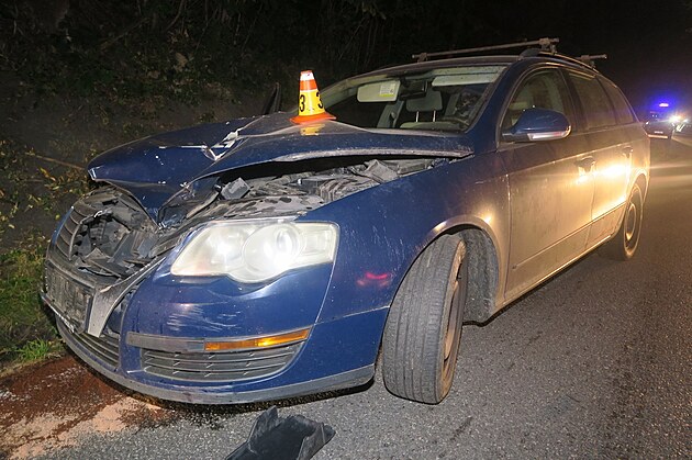Následky dopravní nehody mezi obcemi Malé Hradisko a Stínava na Prostějovsku (28. srpna 2025)