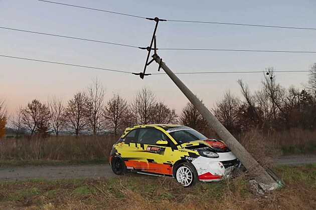 Závodník při rallye na Přerovsku narazil do sloupu a poškodil elektrické vedení.
