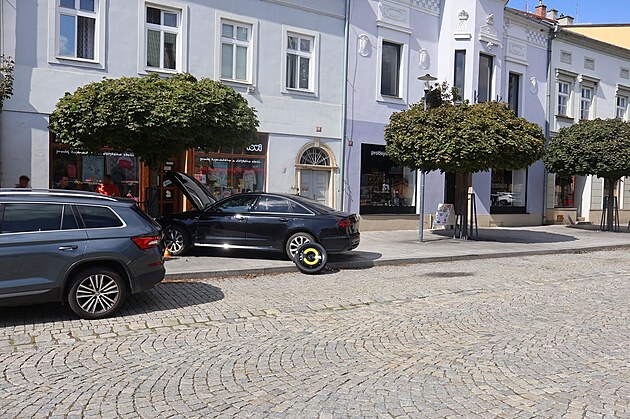 Žena si v Uničově při parkování spletla brzdu s plynem, s vozem vjela na chodník a narazila do okrasného stromku.