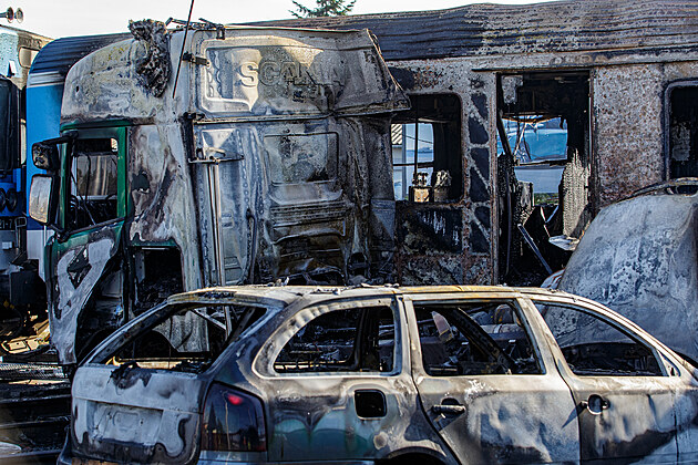 Na železničním přejezdu v Olomouci narazil osobní vlak do kamionu, při následném požáru shořelo i poblíž stojící osobní auto. (17. října 2023)