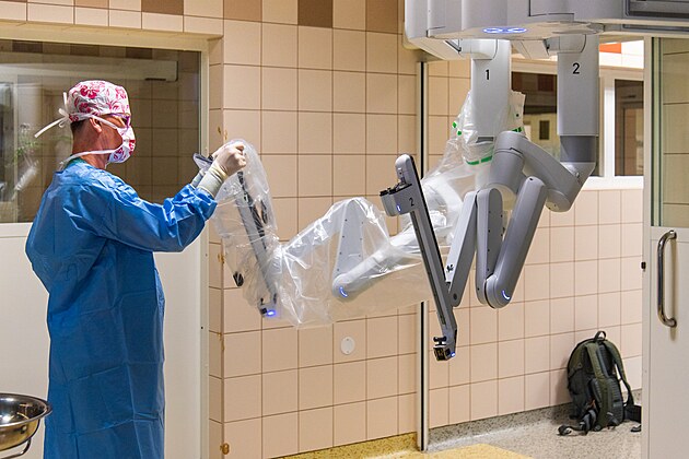 Olomoucká fakultní nemocnice využívá při operacích nejnovější generaci víceramenného laparoskopického operačního systému da Vinci. Lékař při ní operuje pomocí joysticku.