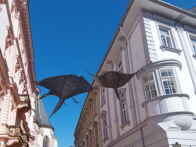 Umělecké dílo Andělé moří Michala Trpáka, které zdobí olomoucké ulice.