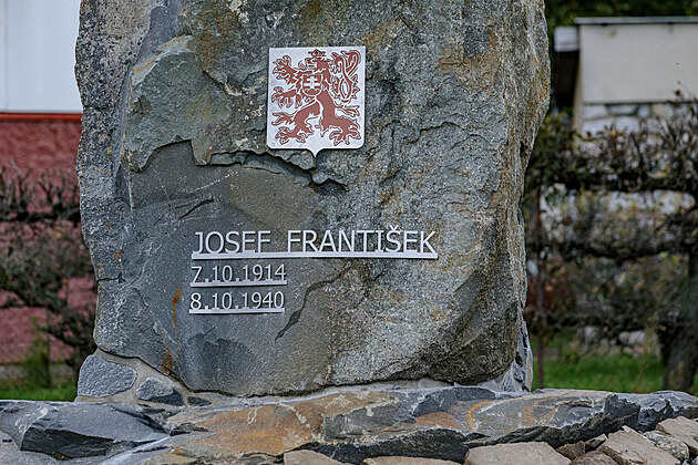 Letecké eso druhé světové války Josefa Františka připomíná od soboty v jeho rodných Otaslavicích na Prostějovsku originální pomník. (5. října 2024)