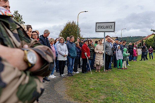 Letecké eso druhé světové války Josefa Františka připomíná od soboty v jeho rodných Otaslavicích na Prostějovsku originální pomník. (5. října 2024)