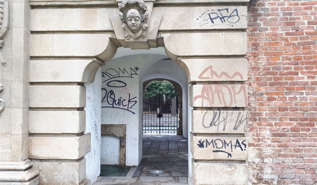 Nápisy se na bráně objevily v zatím blíže neznámou dobu během června či července, policie je řeší od úterního oznámení.