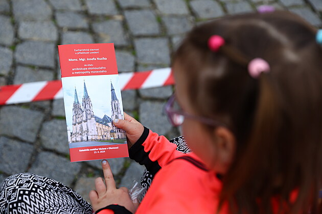 Před katedrálou sv. Václava v Olomouci se scházejí stovky lidí na inauguraci nového arcibiskupa Josefa Nuzíka. (13. dubna 2024)