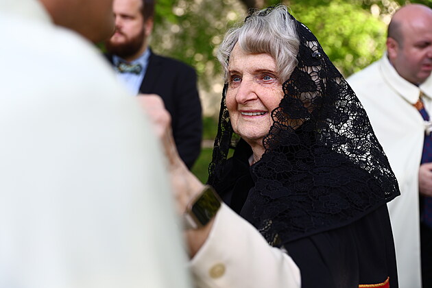 Před katedrálou sv. Václava v Olomouci se scházejí stovky lidí na inauguraci nového arcibiskupa Josefa Nuzíka. (13. dubna 2024)