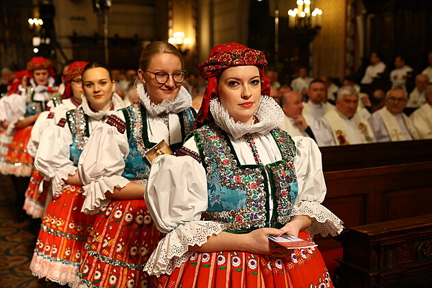 Před katedrálou sv. Václava v Olomouci se scházejí stovky lidí na inauguraci nového arcibiskupa Josefa Nuzíka. (13. dubna 2024)