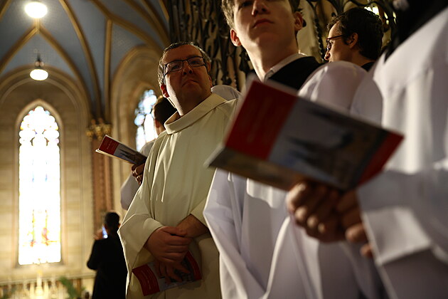Před katedrálou sv. Václava v Olomouci se scházejí stovky lidí na inauguraci nového arcibiskupa Josefa Nuzíka. (13. dubna 2024)