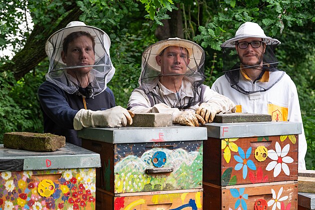 Trojice (zleva) Ivo Šnyrych, Vít Zaoral a Martin Janíček se zaměřila na včelařství zájmově i profesně.