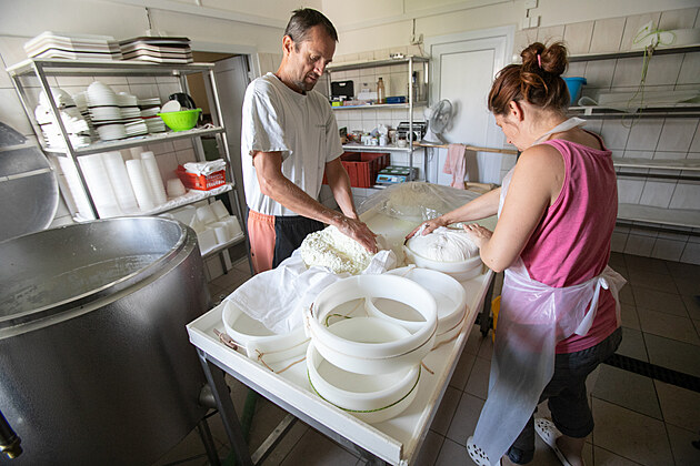 Hrdličkovi při práci na výrobě ovčích sýrů