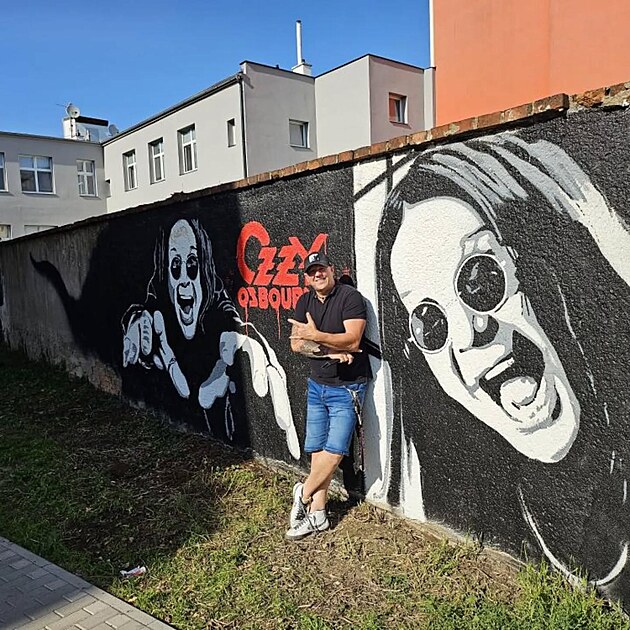 Michal Dvořák z Prostějova vytvořil na zdi na ulici Krokova portrét zpěváka Ozzyho Osbourna jako poctu tomuto umělci. ( 6.8.2025)