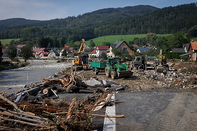 Obec Česká Ves a řeka Bělá po povodních (17. září 2024)