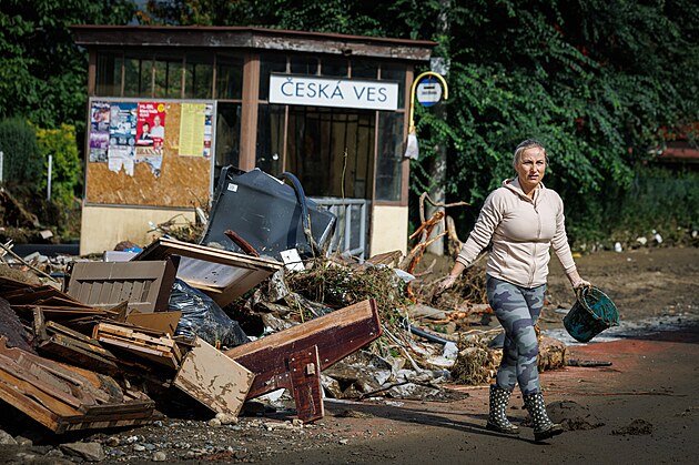 Obec Česká Ves a řeka Bělá po povodních (17. září 2024)