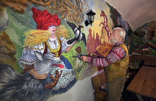 Malíř Petr Herzig Dubický při práci na jednom ze svých děl