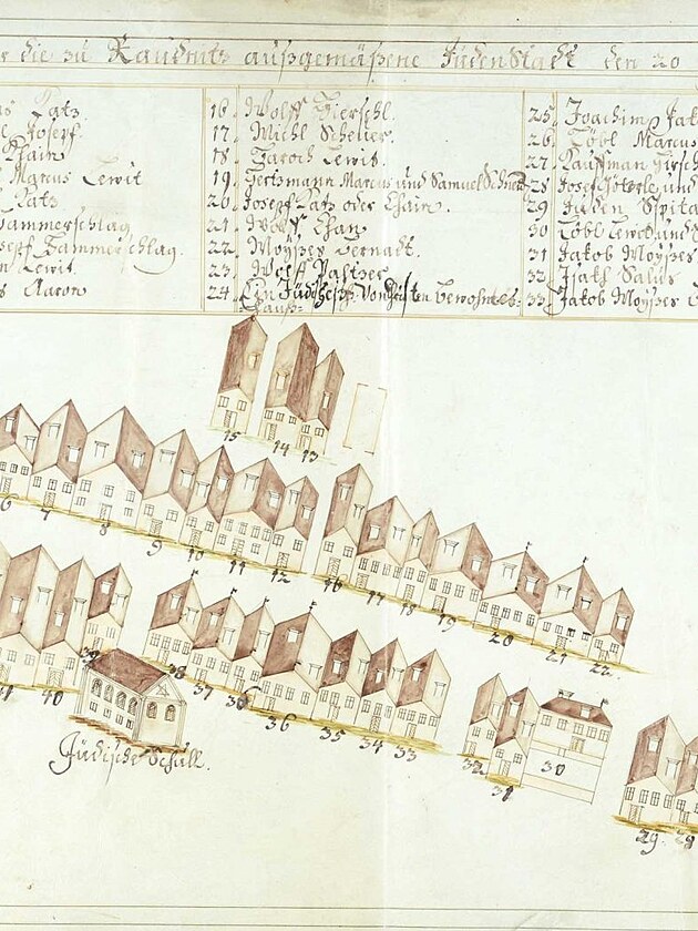 Plánek židovského ghetta v Osoblaze z roku 1728, který dokumentuje barokní židovské osídlení, se stal novou položkou na seznamu UNESCO. Na snímku je ukázka translokačního plánu.