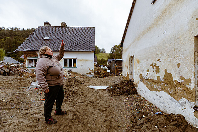 Pavlína Eliášová z Jeseníku před poškozeným domem, který se sice nemá bourat, ale k bydlení není.
