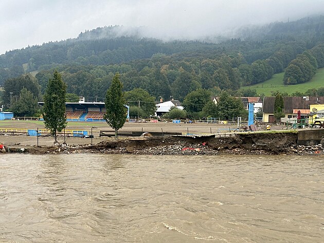 Záplavy poničily sportovní infrastrukturu v Hanušovicích.