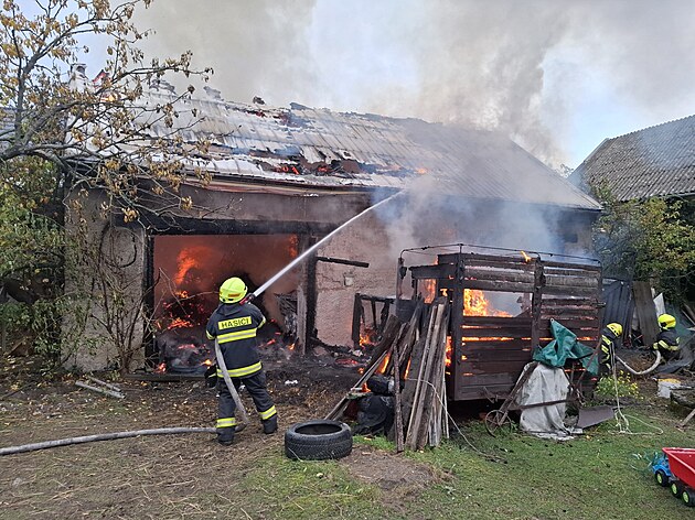Požár hospodářské budovy v Dolanech na Olomoucku (8. října 2025)