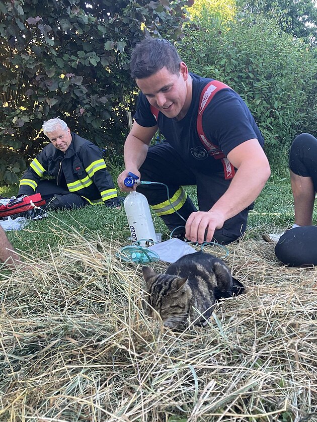 Při požáru domku v Bouzově - Blažejově zachraňovali hasiči kocoura.