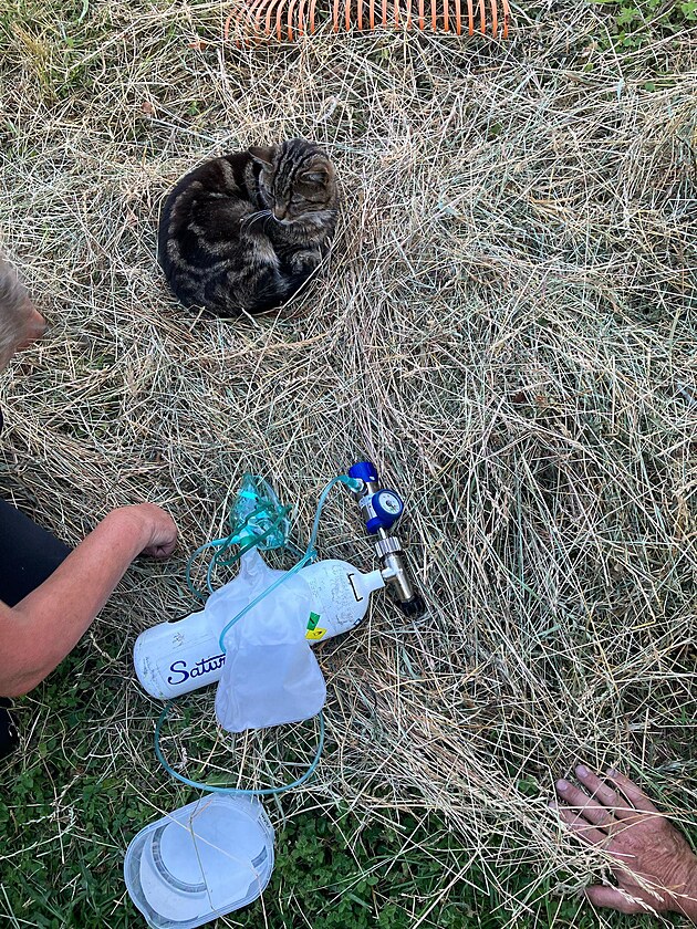 Při požáru domku v Bouzově - Blažejově zachraňovali hasiči kocoura.