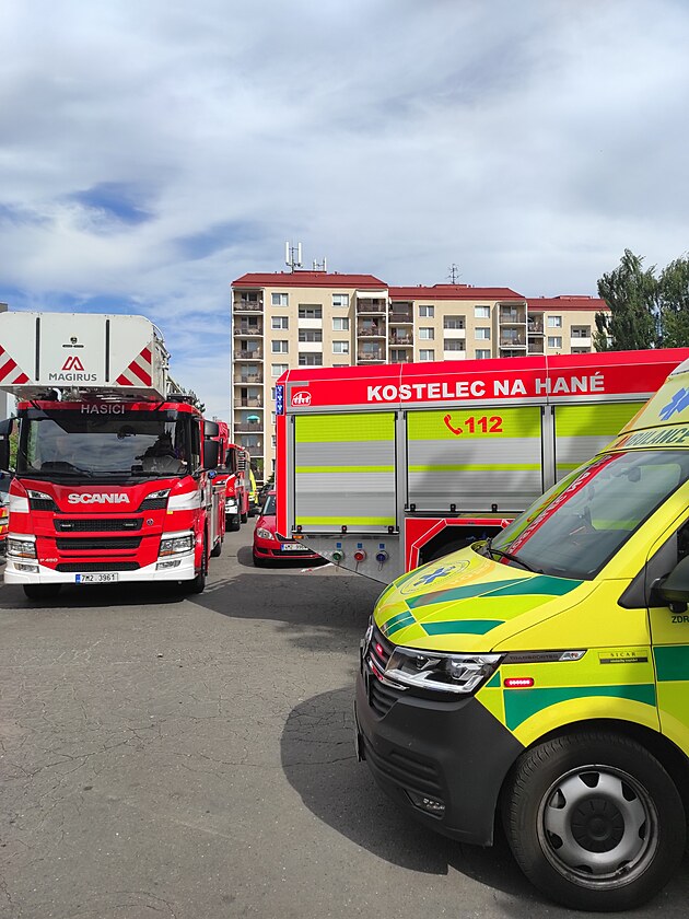Hasiči museli z panelového domu v Prostějově evakuovat kvůli požáru ve sklepě přes 50 osob. Sedm osob bylo předáno do péče záchranářů.