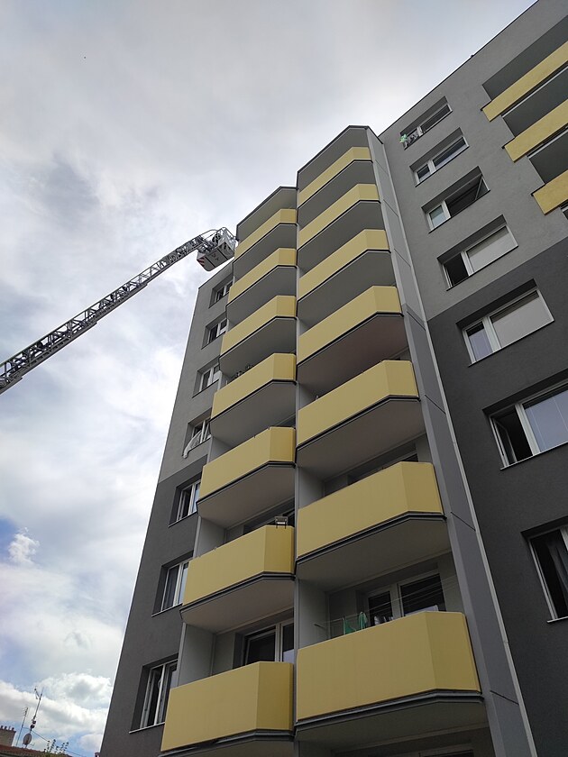 Hasiči v Prostějově museli evakuovat obyvatele panelového domu za pomoci výškové techniky.