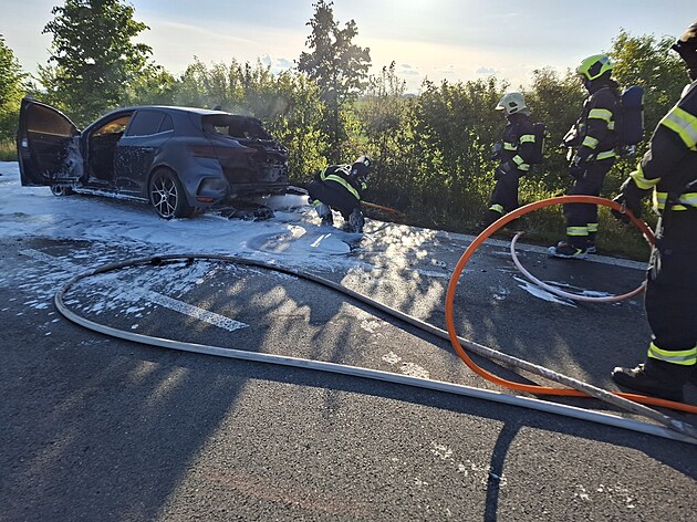 Hašení požáru auta u Dubu nad Moravou (20. května 2025)