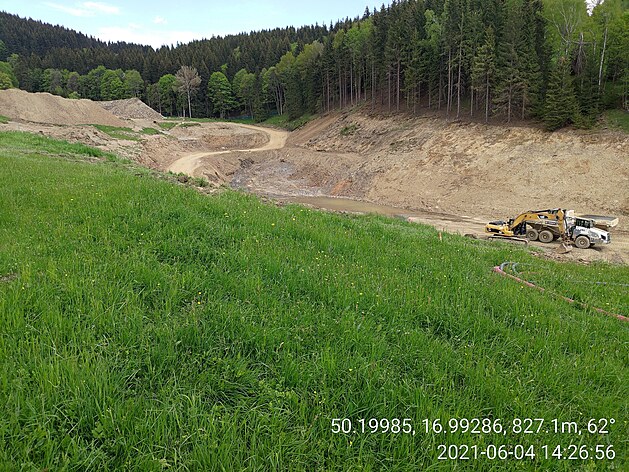 Soudní exekutor Dalimil Mika začal načerno stavět vodní nádrž v Rychlebských horách na Šumpersku. Má zadržet vodu v krajině a sloužit k zasněžování sjezdovek ve skicentru Paprsek, které provozuje jeho rodina.