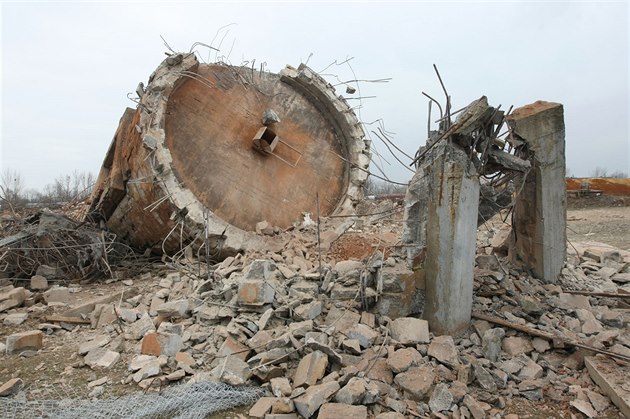 Zbytky odstřeleného komína, který stál v areálu přerovské chemičky Precheza.