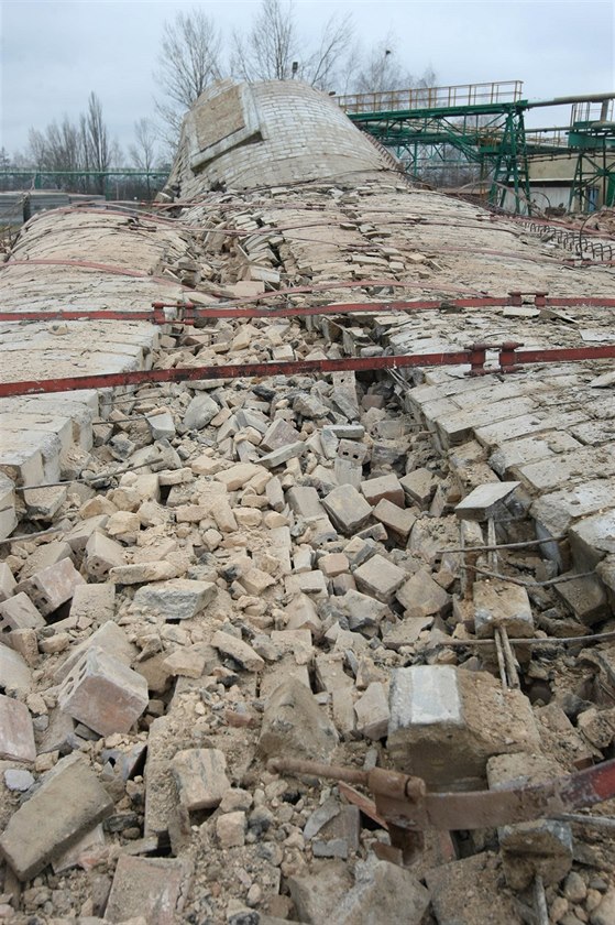 Zbytky odstřeleného komína, který stál v areálu přerovské chemičky Precheza.