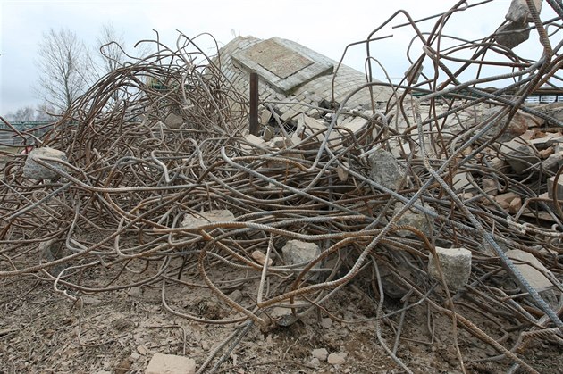 Zbytky odstřeleného komína, který stál v areálu přerovské chemičky Precheza.