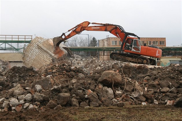 Zbytky odstřeleného komína, který stál v areálu přerovské chemičky Precheza.