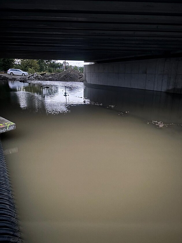 U nově zbudovaného dálničního mostu posledního chybějícího úseku D1 poblíž Přerova někdo opakovaně ucpal provizorní odvodnění potoka, kvůli čemuž došlo k zatopení prostoru a poškození díla. (září 2025)