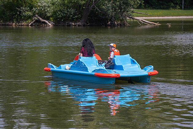 Na Laguně v Přerově se nově objevila šlapadla, která si mohou lidé půjčit a užít si odpočinek na vodě.