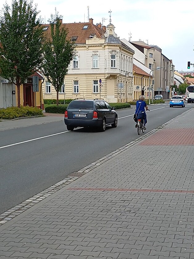 Řidiči v prostějovské Plumlovské ulici nevidí cyklisty rádi, často je dlouho nelze bezpečně předjet, neboť si k tomu musí najet do protisměru. Při rekonstrukci zde totiž přibyly parkovací zálivy a pásy zeleně, ovšem silnice byla zúžena.