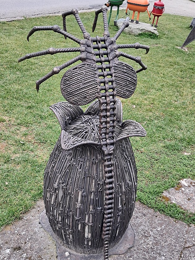Kovář Roman Hrbáček z Citova na Přerovsku vystavuje svá díla ve své venkovní galerii.