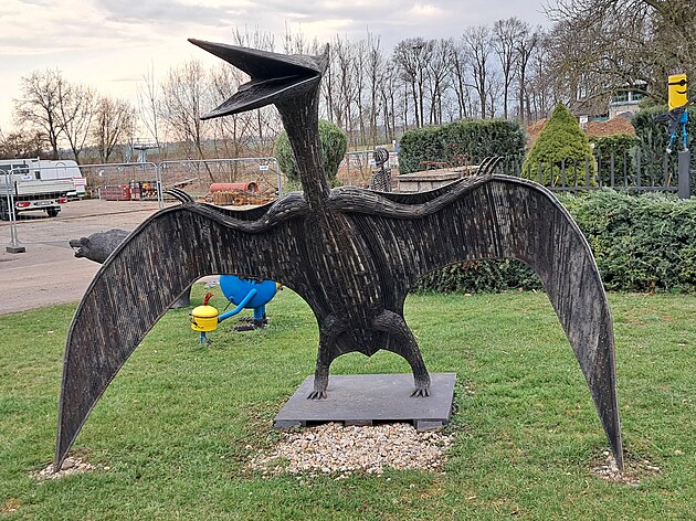 Kovář Roman Hrbáček z Citova na Přerovsku vystavuje svá díla ve své venkovní galerii.