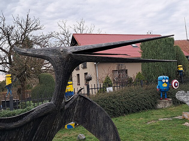Kovář Roman Hrbáček z Citova na Přerovsku vystavuje svá díla ve své venkovní galerii.